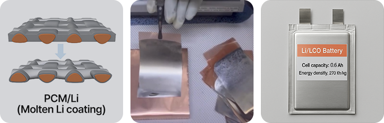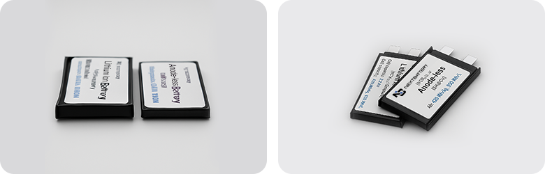 리튬이온전지 | 무음극 리튬메탈 전지 2.2 Ah 동일 용량의 셀 두께 비교